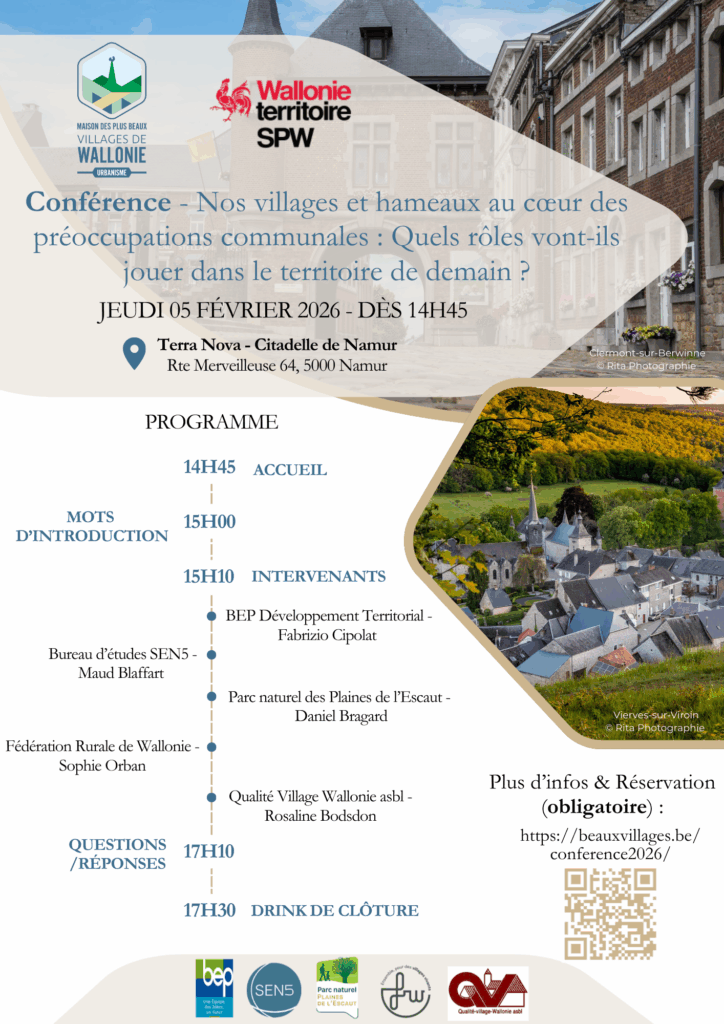 Sur le terrain, l’équipe de ‘Qualité Village Wallonie’ propose un encadrement adapté et déploie des interventions variées, notamment en matière de restauration du patrimoine et d’aménagement des lieux de la vie quotidienne, collective et associative (abords du petit patrimoine, placettes, sentiers, espaces publics…). Rosaline Bodson, directrice de l’association, s’appuiera sur cette expérience et sur des exemples concrets de projets pour montrer comment le patrimoine rural peut devenir un levier d’aménagement, de lien social et de vitalité, et renforcer l’attractivité, de nos villages et hameaux.